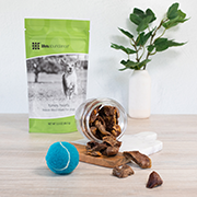 Bite size, free-range lamb and venison jerky dog treats are perfect for training or a healthy snack. Plenty of chewy decadence with no artificial preservatives or colors.